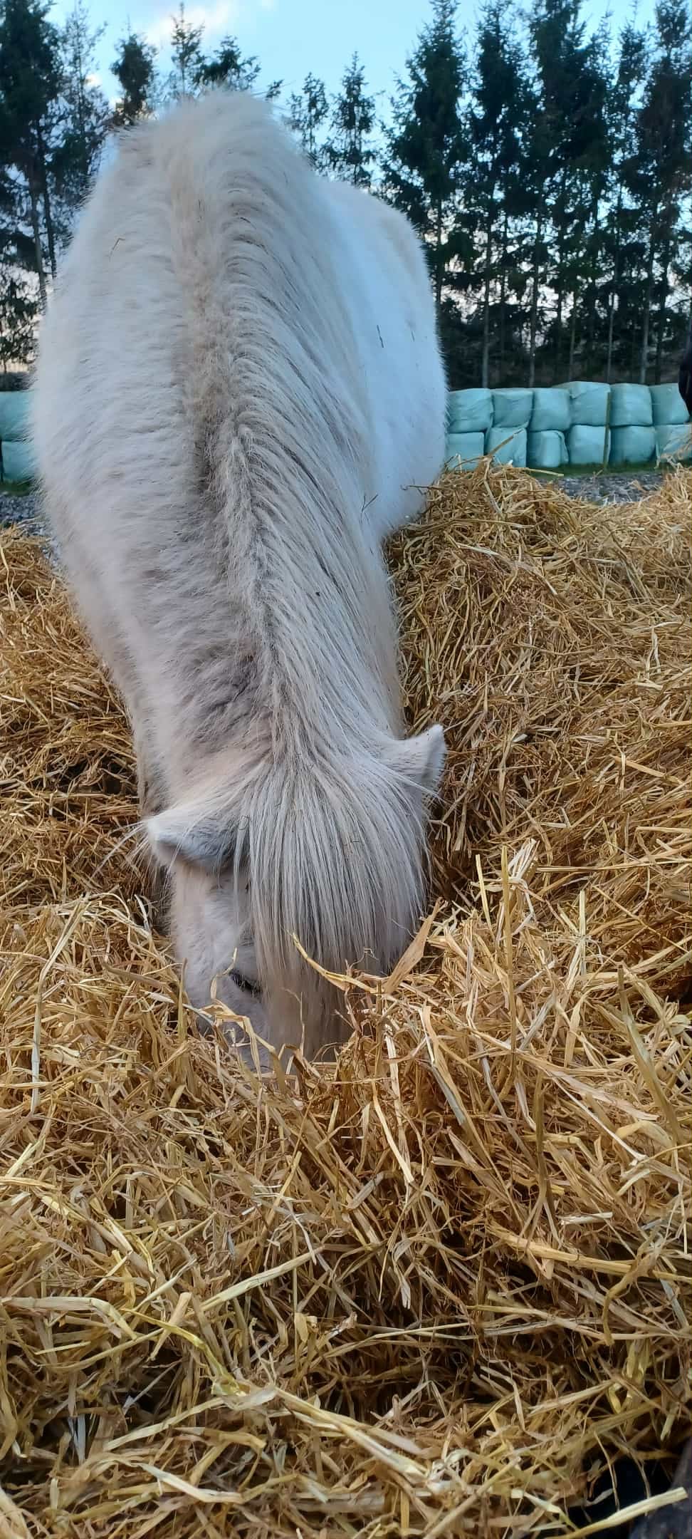 Alle vores heste går i løsdrift på store mudderfri folde. Vi har anlagt en høj midt på rideskole folden, som hestene benytter sig meget af at kravle rundt på. Der fodres med wrap 2 gange dagligt, ved siden af får de fri halm som berigelse. Hestene er adgang til slikstensbar og selvfølgelig frisk vand altid. De heste som behøver individuelt fodring bliver fodret seperat. Om sommeren går vores heste primært på store sommerfolde med urter. Deres naturlige browsing bliver tilgodeset ved at afklippede grene og buske bliver lagt ind til dem.