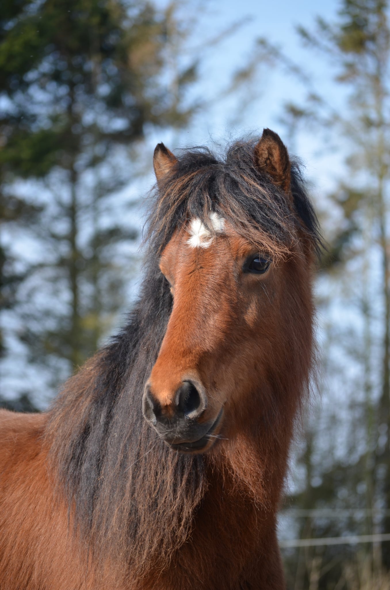Rødbroget hoppe fra 10 oktober 2009. Robust dame med sine egen fyldige personlighed. Elsker at arbejde og passer godt som en god allround hest til det hele.